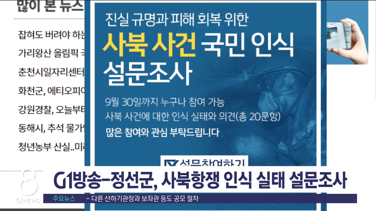 <속보>G1방송, 사북항쟁 인식 실태 설문조사 실시
