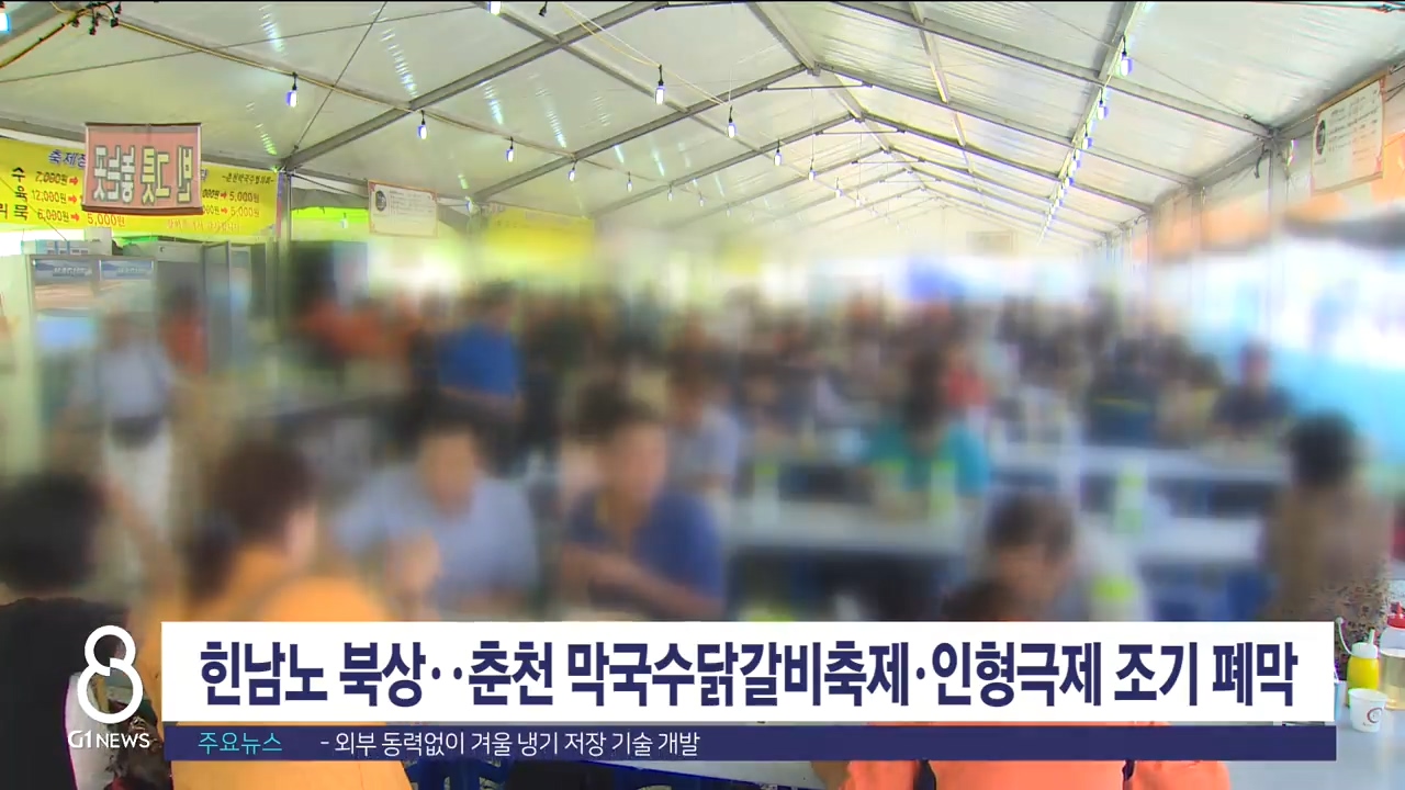 춘천의 대표 축제인 춘천막국수닭갈비축제와 춘천 인형극제가 힌남노의 북상에 따라, 내일(04일)까지 예정된 축제를 조기 폐막하기로 결정했습니다.