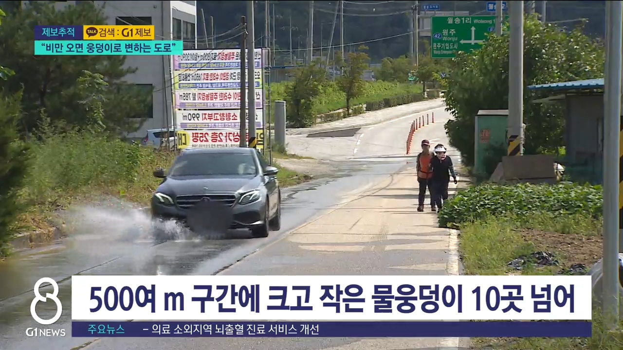 원주의 한 농어촌도로가 비만 오면 물 웅덩이로 변하고 있습니다.