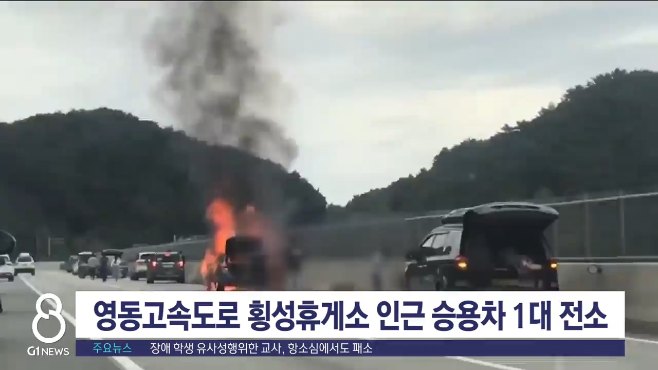 오늘 오후 3시 22분쯤 영동고속도로 강릉 방향 횡성휴게소 인근에서 갓길에 주차된 승용차에서 불이 났습니다.