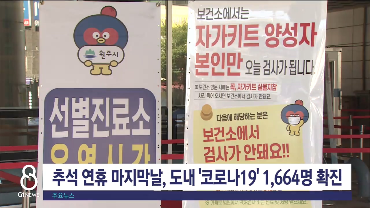 추석 연휴 마지막날인 오늘, 도내에서는 '코로나19' 신규 확진자 1,664명이 발생했습니다.