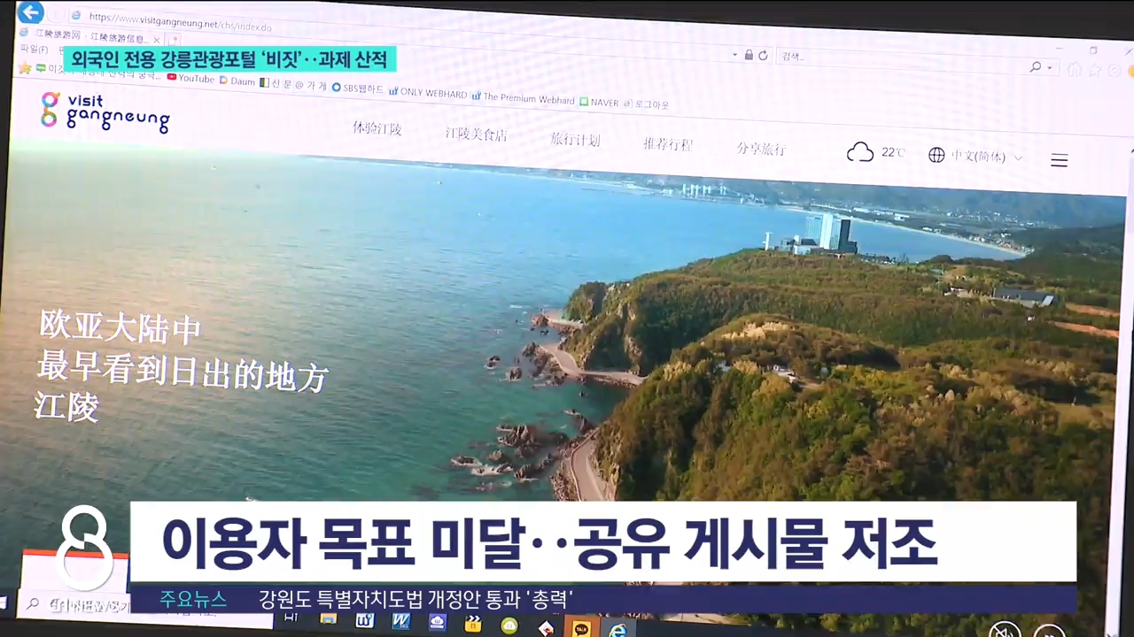 "부족한 콘텐츠라든지 홍보 부분이라든지 이런 걸 좀 보완해서 저희가 이 홈페이지가 외국인 전용 특성화 된 홈페이지기 때문에 외국 관광객 대상으로 해서 강릉 관광에 좋은 정보를 제공할 수 있는 홈페이지가 될 수 있도록 저희가 노력을 많이 하겠습니다."