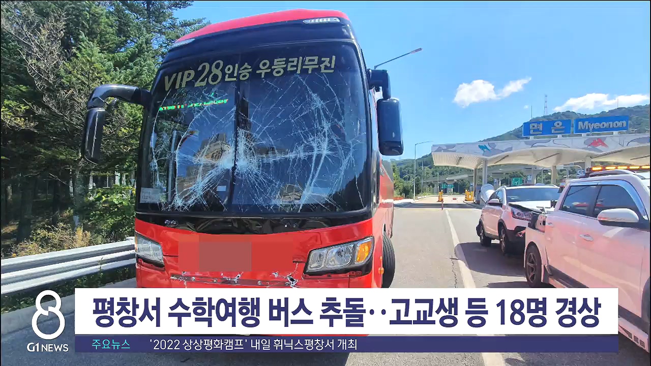 평창서 수학여행 버스 추돌..고교생 18명 경상