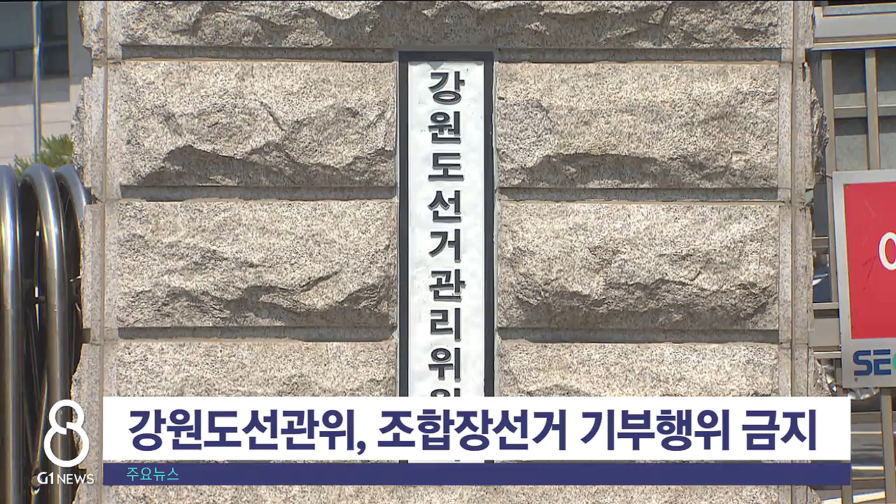 강원도선거관리위원회는 내년 3월 8일 실시되는 제3회 전국동시조합장 선거를 앞두고 오늘(21일)부터 기부행위가 제한됨에 따라 예방·단속활동을 벌인다고 밝혔습니다.