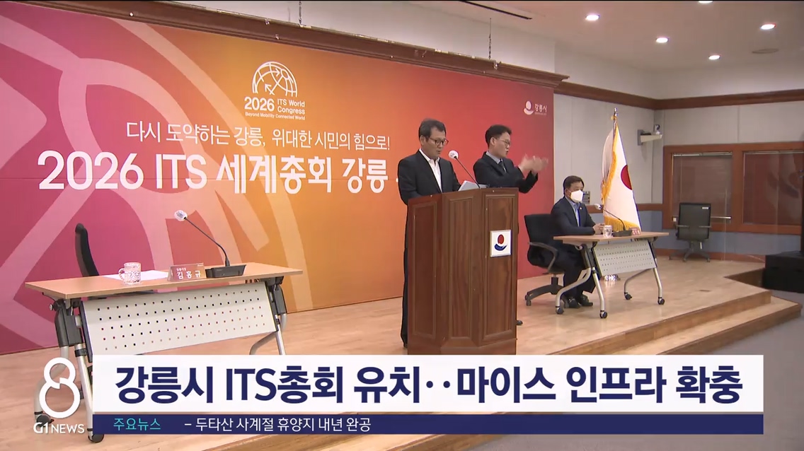 김홍규 강릉시장은 2026 ITS 세계총회 강릉 유치와 관련해 기자회견을 열고, 총회를 계기로 컨벤션 센터가 건립되는 등 마이스 산업 인프라가 대폭 확충될 것이라면서,
