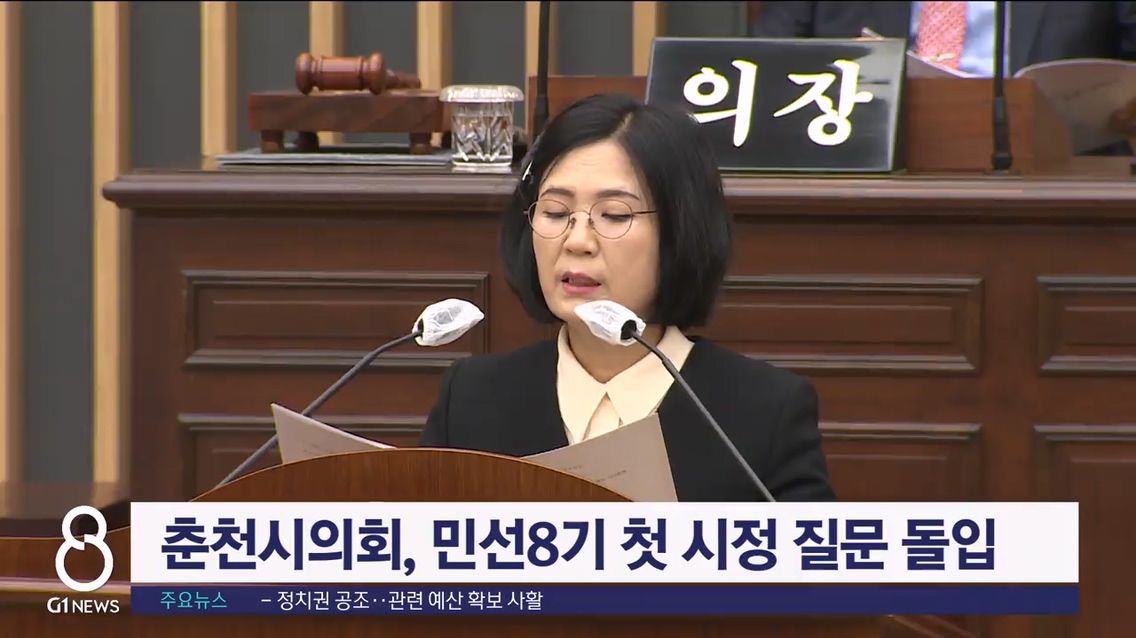춘천시의회에서 열린 제320회 정례회 2차 본회의, 시정 질문에 나선 국민의힘 배숙경 의원은 육동한 시장이 추진하고 있는 교육도시 조성과 관련해 도교육청 계획과 엇박자가 나는 등 여러가지 문제점이 있다고 지적했습니다.