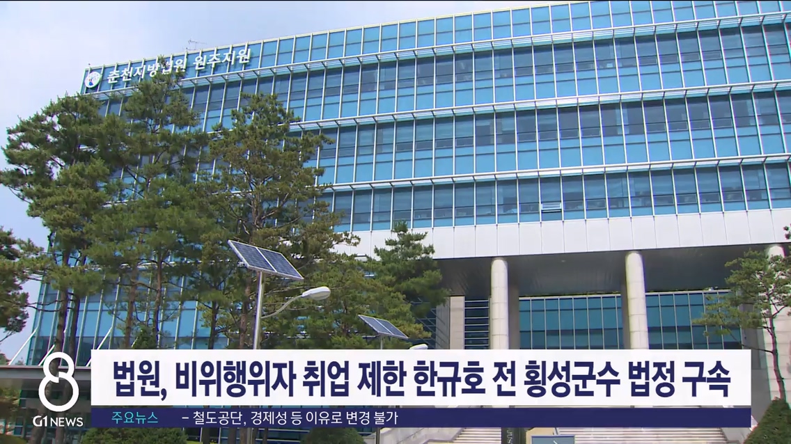 비위면직자의 경우 자신이 속해 있던 기관의 업무와 밀접한 관련이 있는 기업에 5년간 취업할 수 없는데도, 한 전 군수는 이를 어기고 작년 1월 횡성의 한 기업에 불법 취업한 혐의로 재판에 넘겨졌습니다.