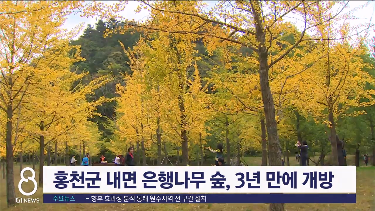 홍천군에 따르면 내면 광원1리에 있는 4만여㎡규모의 은행나무 숲이 '코로나19' 사태 후 처음으로 개방돼 이달 말까지 일반인에게 개방됩니다.
