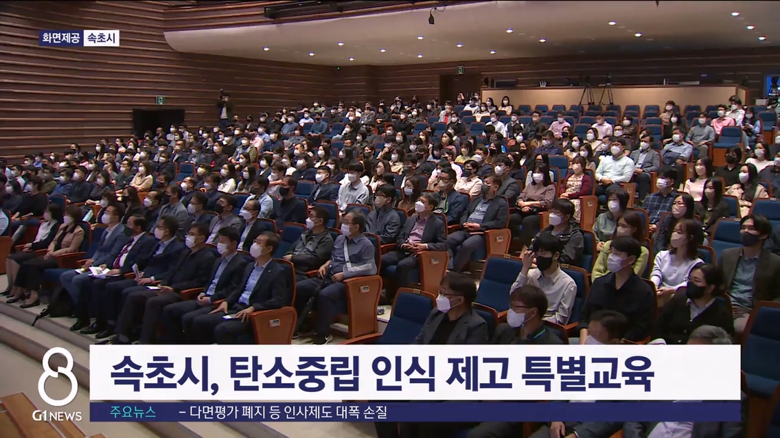 속초시는 오늘(4일) 문화예술회관에서 속초시 전 직원과 관련 보조단체 직원을 대상으로 탄소중립 인식 제고 특별 교육을 실시했습니다.