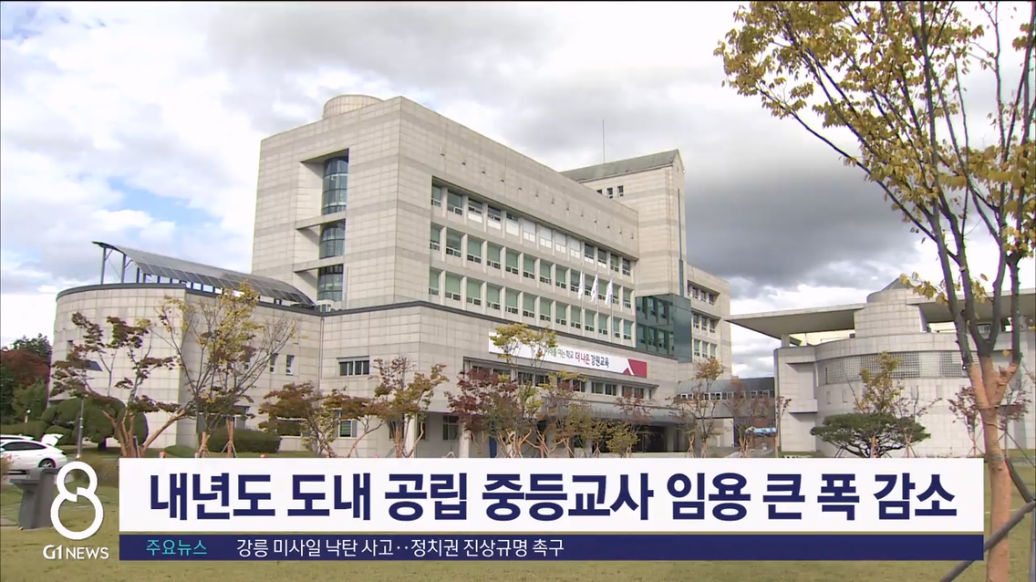 내년도 강원도내 공립 중등교사 임용규모가 큰 폭으로 줄어듭니다.