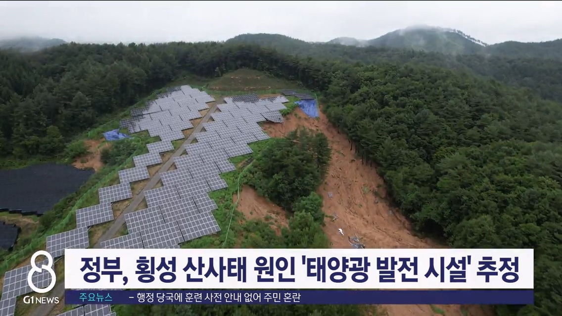 지난 8월 발생한 횡성 둔내 산사태의 원인이 태양광 발전 시설 때문일 수 있다는 정부 결과가 나왔습니다.