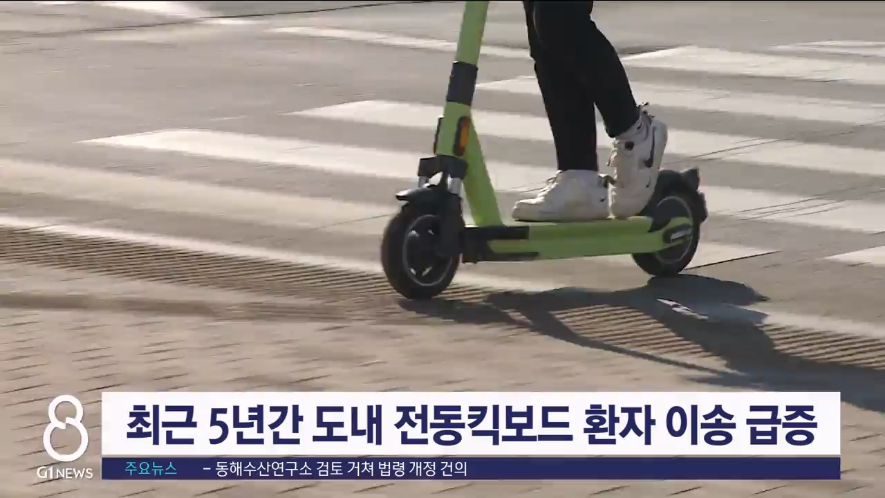 거리에서 쉽게 볼 수 있는 전동킥보드로 인한 안전사고가 급증하면서, 도내에서도 관련 응급환자 이송이 늘고 있는 것으로 나타났습니다.