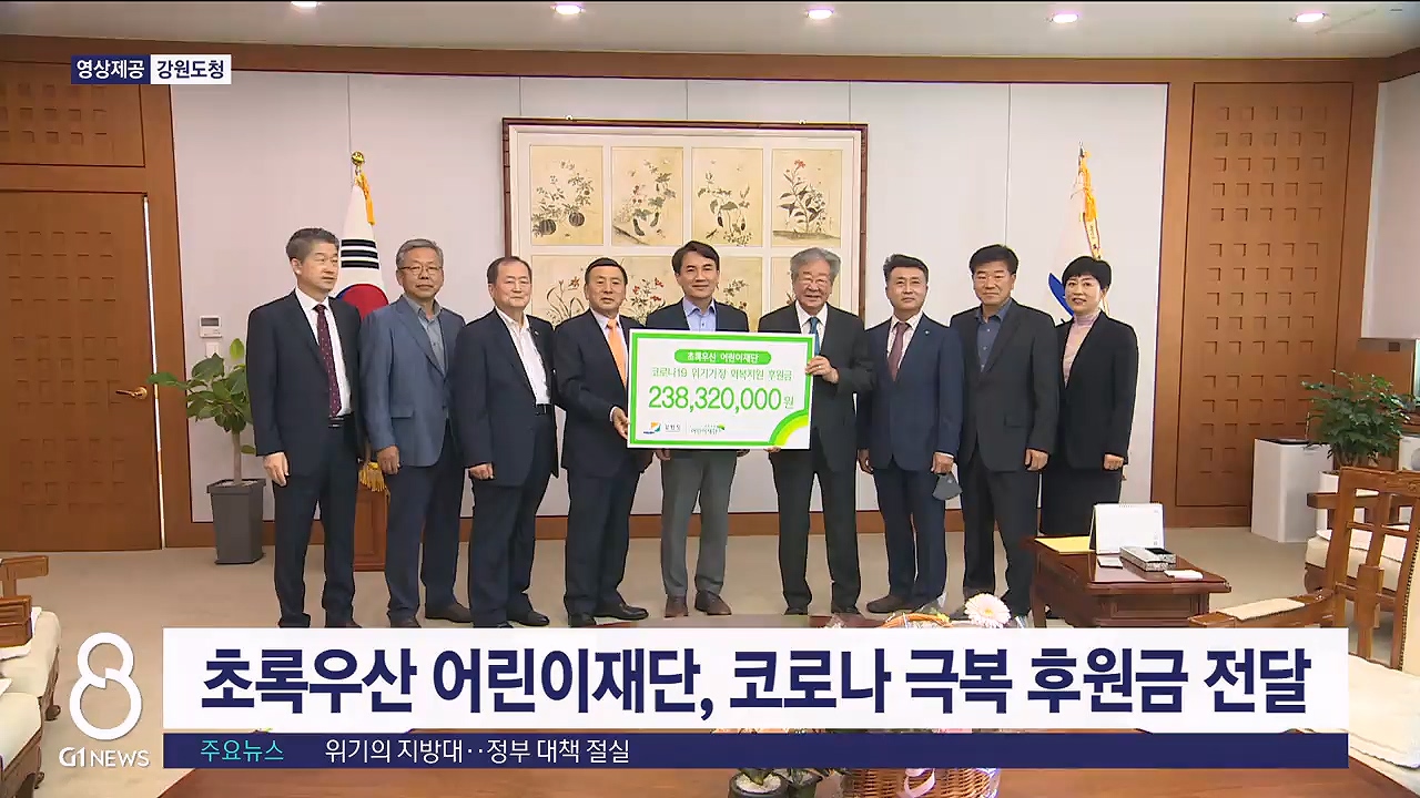 초록우산 어린이재단 강원지역본부가 코로나19로 위기에 놓인 도내 아동을 위한 후원금을 강원도에 전달했습니다.