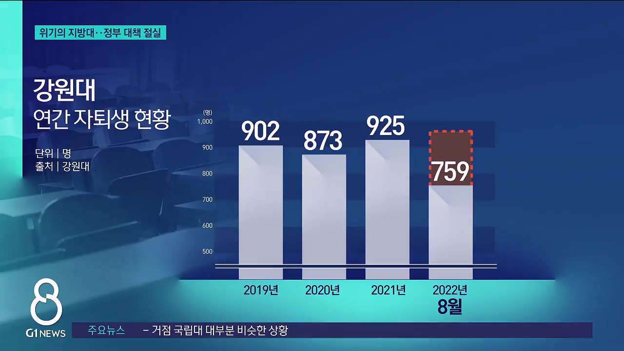 강원도를 비롯해 위기에 처한 지방대학을 살릴 정부 차원의 지원책 마련이 시급한 이윱니다.