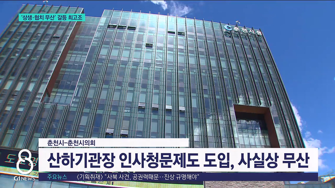 G1뉴스에서는 얼마전 춘천시의회가 시 산하기관장 인사청문회 도입을 추진한다는 소식 전해드렸죠.