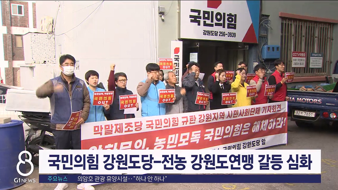 국민의힘 강원도당과 도내 농민단체와의 갈등이 심화되고 있습니다.