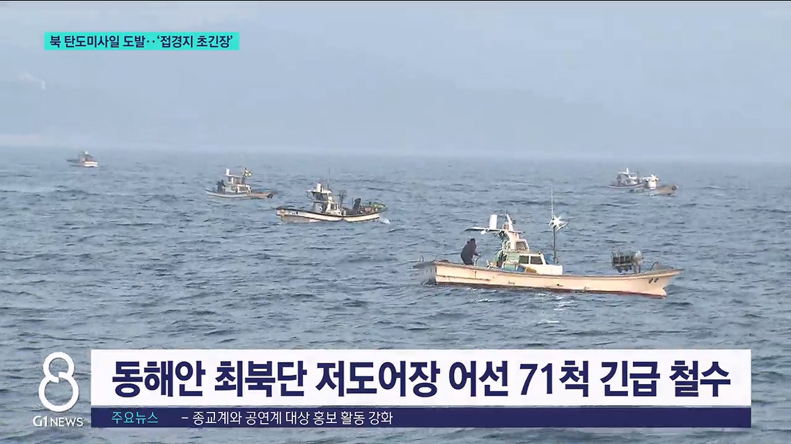 /북한이 발사한 단거리 탄도미사일이 속초 동방 57km 떨어진 공해상에 떨어지면서 어선들이 긴급 철수했기 때문입니다./