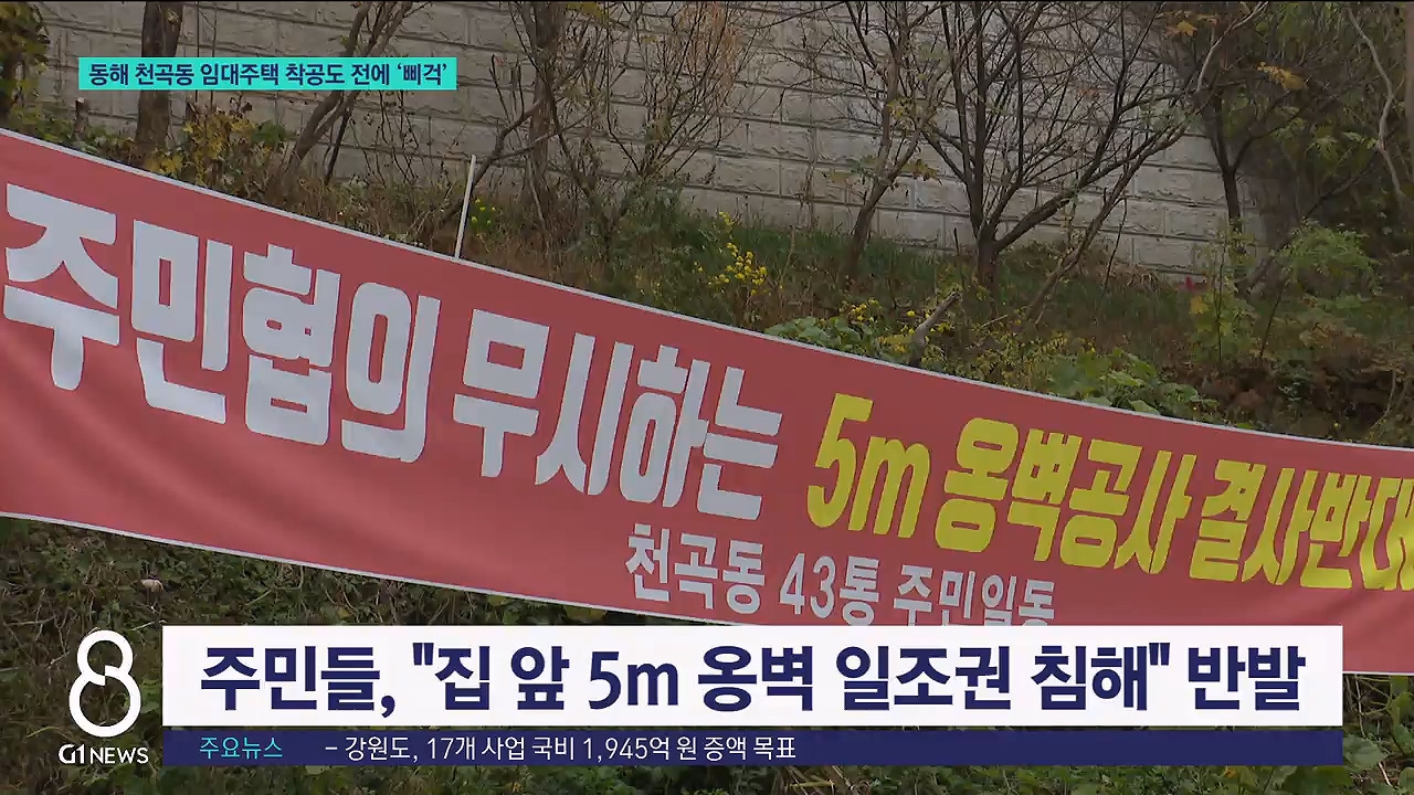 주택 바로 앞에 5m 높이의 옹벽이 생기는 건 일조권 침해라며 강하게 반발하고 있습니다.