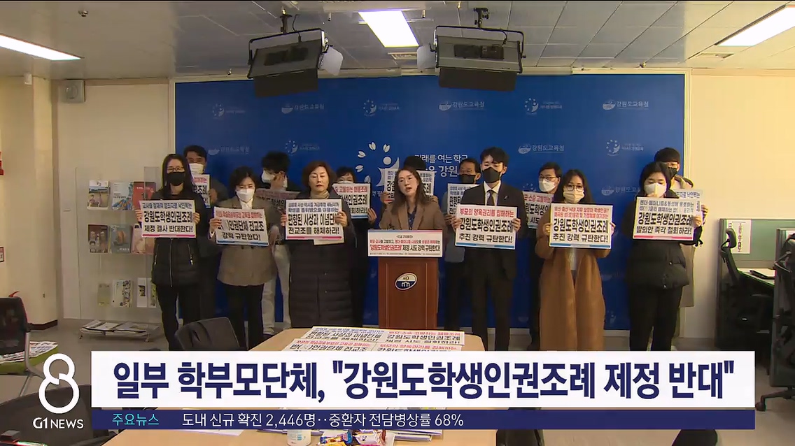 새싹부모회 강원지회 등 강원학부모단체연합회는 오늘(8일) 도교육청에서 기자회견을 열고 '강원도학생인권조례' 제정 시도를 규탄한다고 밝혔습니다.