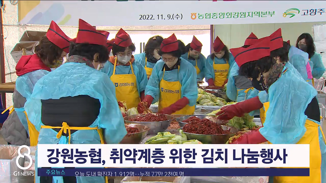 농협중앙회 강원지역본부가 오늘(9일) 춘천 원평 팜스테이마을에서 김장김치 나눔행사를 진행했습니다.
