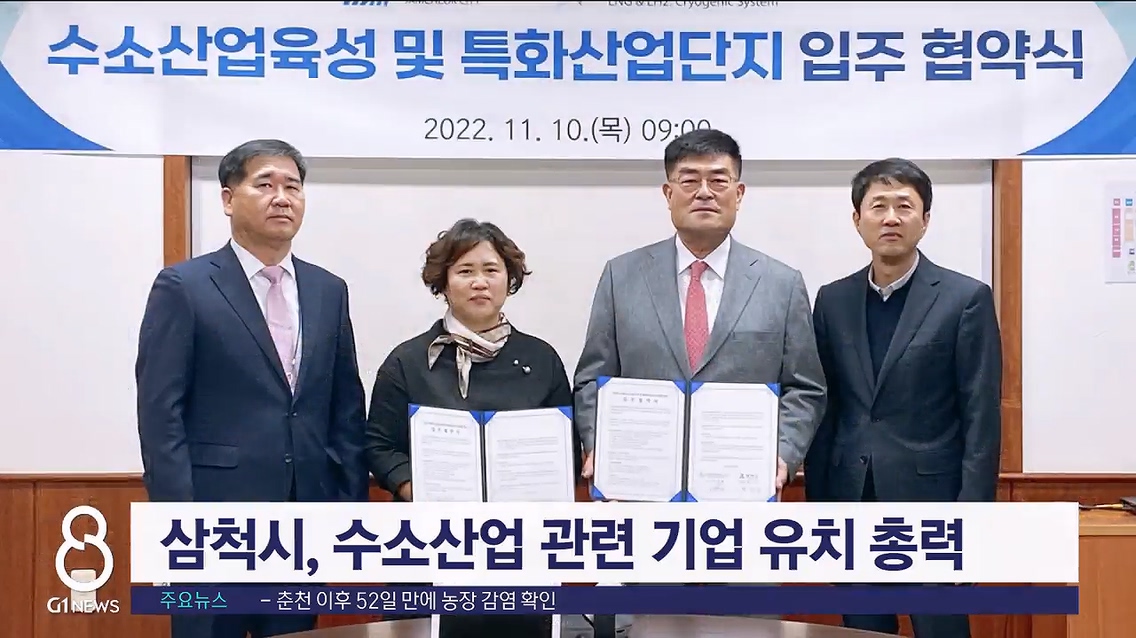 삼척시는 액화수소 제품 생산 기업인 부산 정우이앤이와 삼척수소특화단지 입주를 위한 업무협약을 체결했습니다.