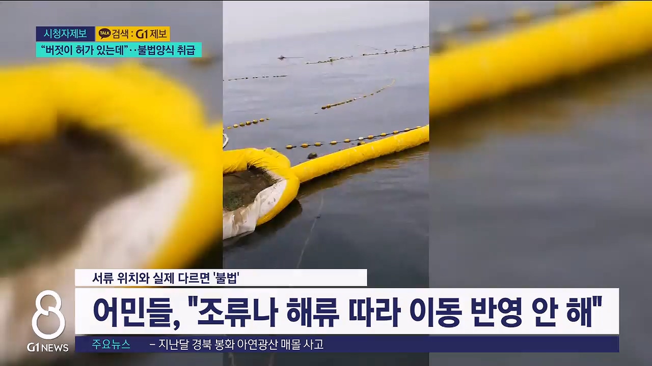 양식장이 허가 서류상 위치와 실제 위치가 달라 불법이라는 겁니다.