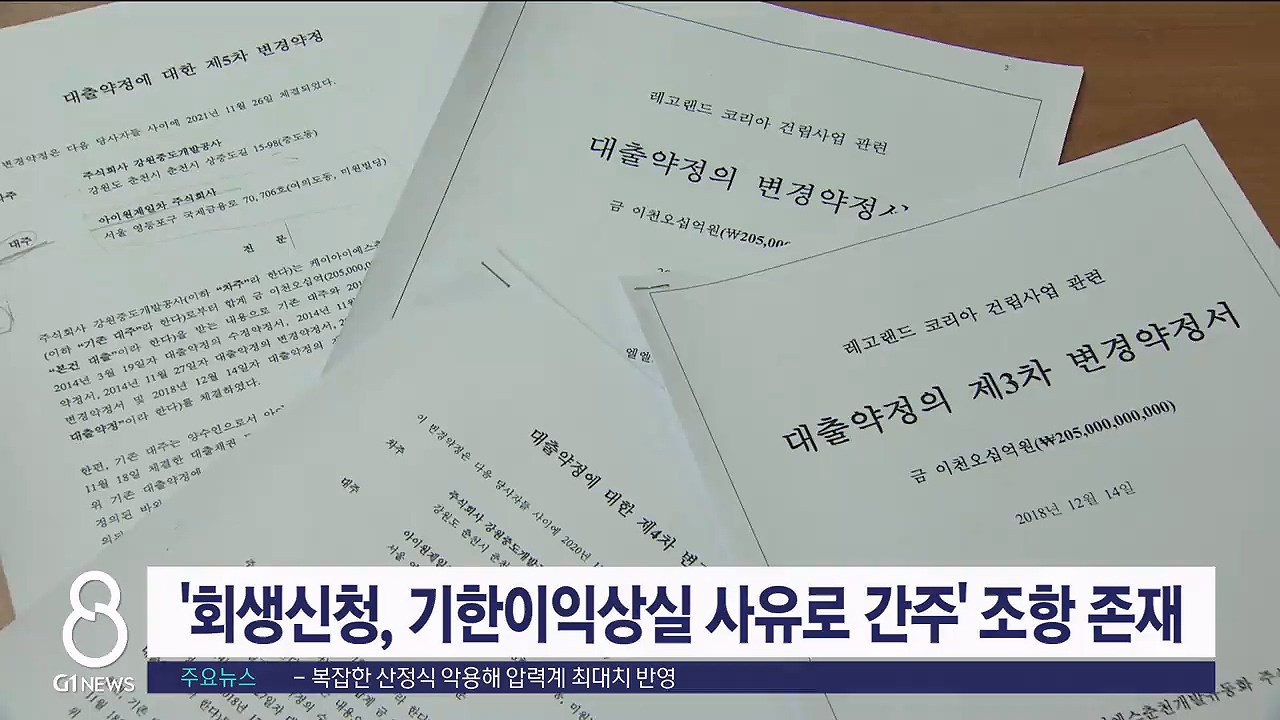 G1 취재진이 입수한 '대출변경 약정서'를 보면, 기한이익상실 사유로 '부도 사유가 발생하는 경우 대출원리금 전액에 대하여 기한의 이익이 상실된다'고 기재 돼 있습니다.