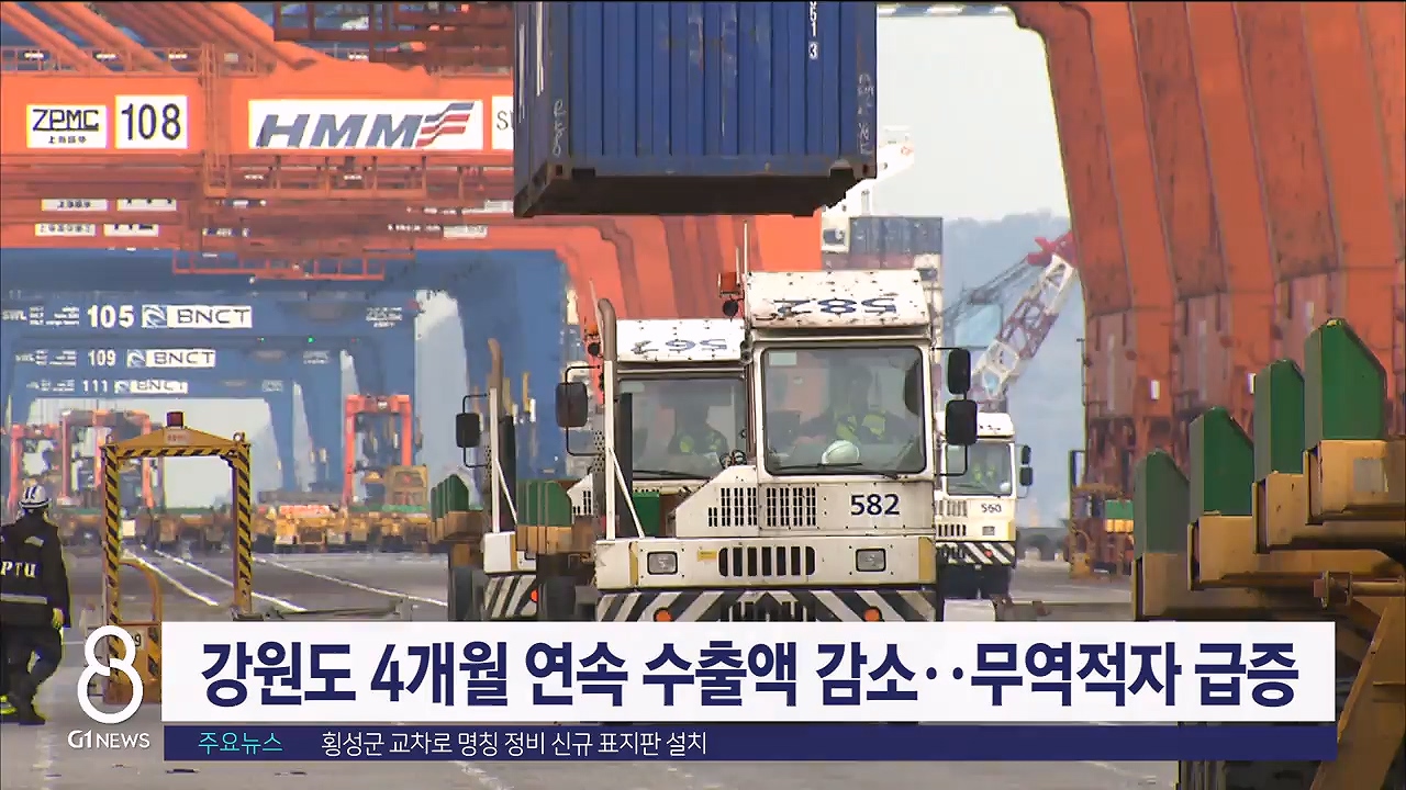 지난달 강원도의 원자재·에너지 수입은 큰 폭으로 늘었지만, 4개월 연속 수출액은 감소하면서 올해 무역 적자가 40억 달러를 넘어섰습니다.