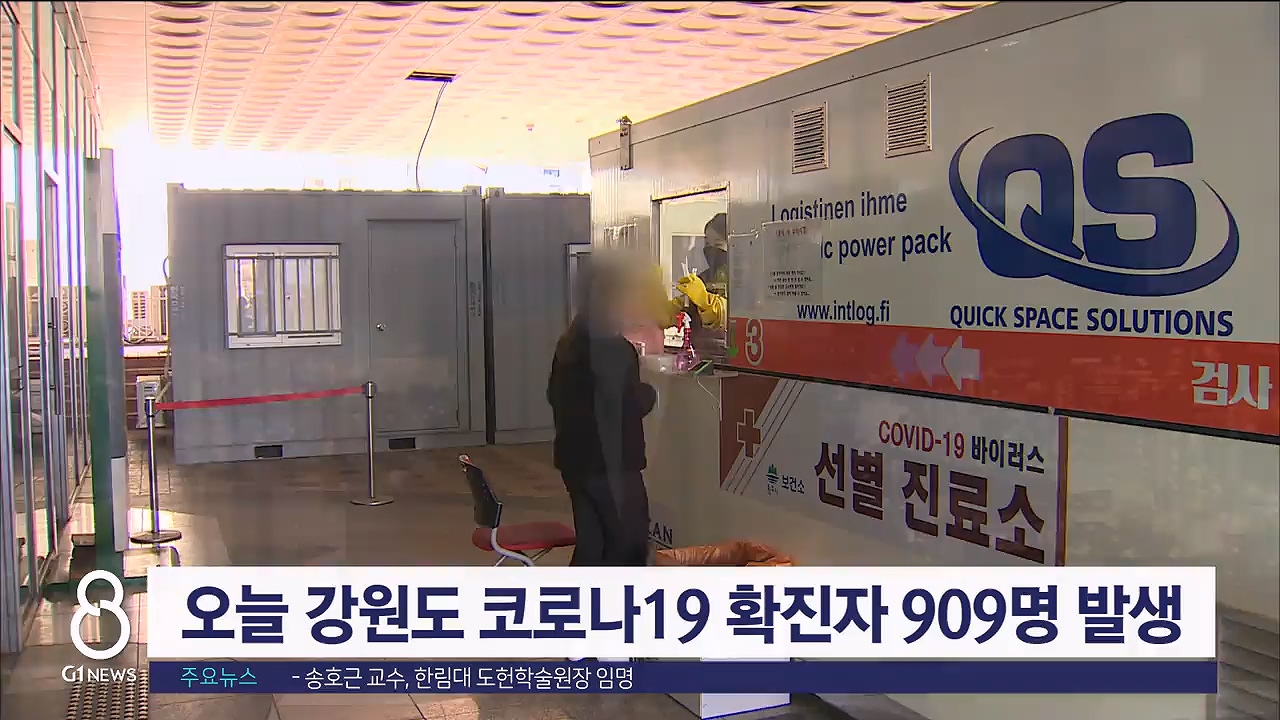 오늘 강원도 18개 시·군에서 코로나19 신규 확진자 909명이 나왔습니다.
