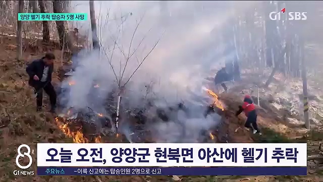 오늘 양양에서 산불계도 비행 중이던 헬기가 추락해, 헬기 조종사와 정비사 등 5명이 숨졌습니다.