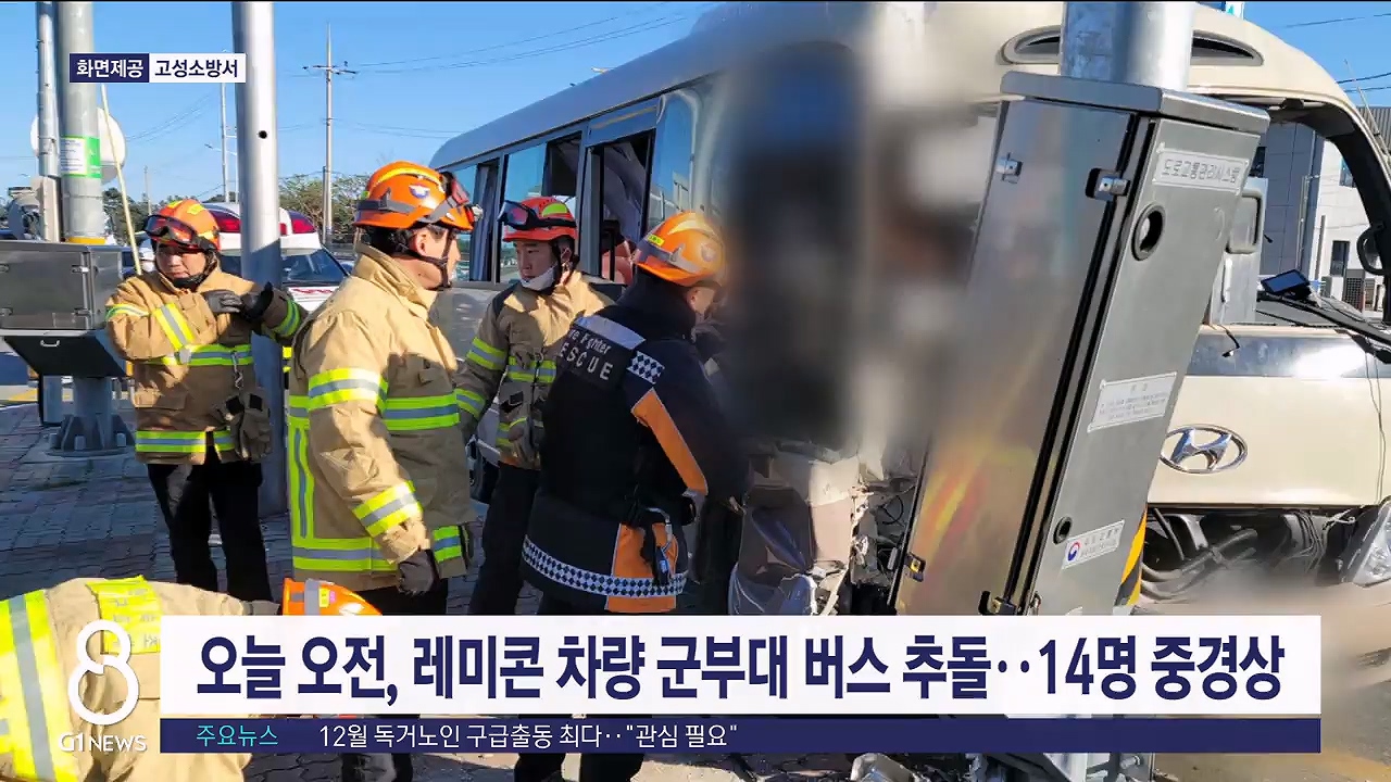 레미콘 차량이 군부대 버스 추돌..14명 중경상