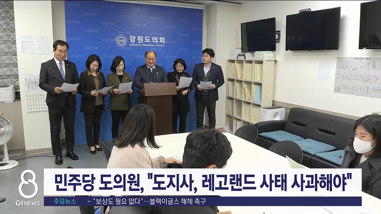 더불어민주당 소속 도의원들이 김진태 도지사에게 레고랜드 사태에 대한 사과를 요구했습니다.