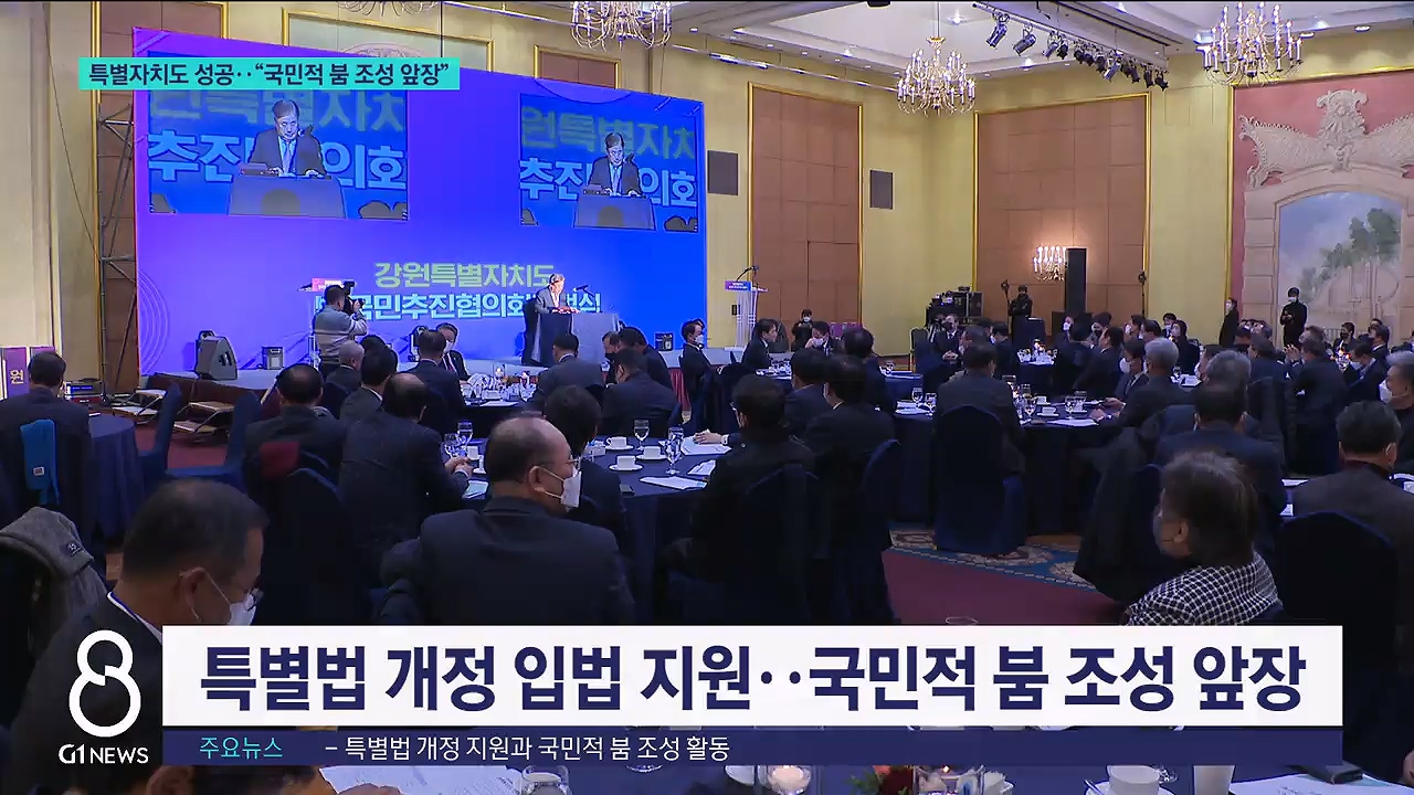 "특례 조항도 앞으로 많이 넣고 (특별법)개정을 해야 합니다. 이러기 위해서는 우선 강원도민들이 한마음이 돼야 하고, 그 다음에 적극적인 홍보를 통해서 인적 네트워크를 동원해 붐업을 시켜야 합니다."