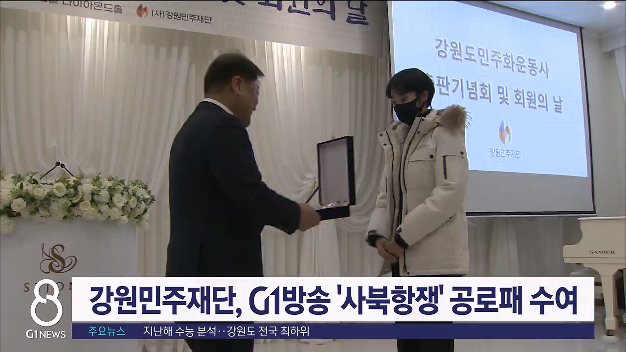 G1방송이 1980년대 광부들의 노동항쟁인 사북항쟁을 재조명한 기획보도와 관련해, 강원민주재단이 공로패를 수여했습니다.