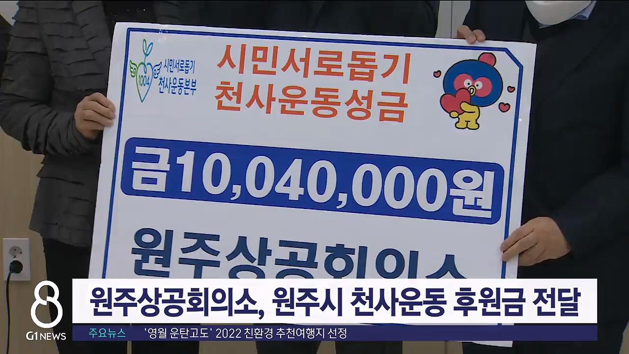 원주상공회의소는 오늘(9일) 원주시청을 방문해 시민서로돕기 천사운동 후원금 천 4만 원을 기탁했습니다.
