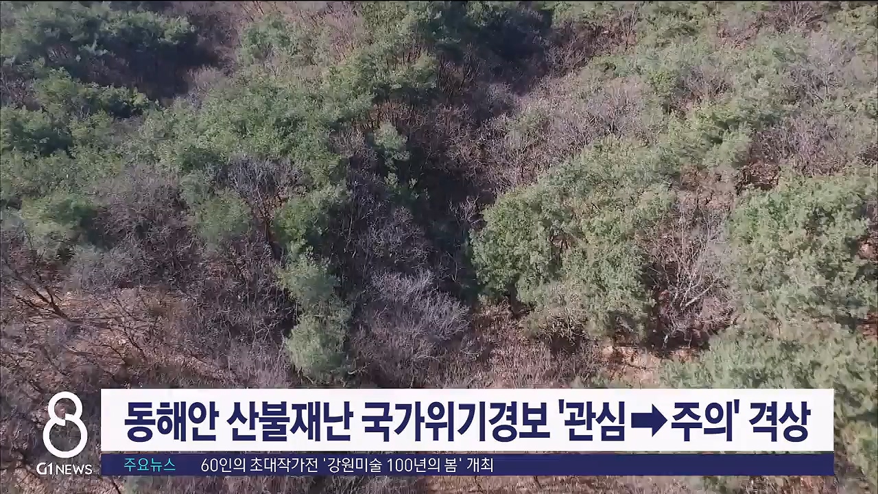 산림청은 강원과 경북 동해안 지역에 건조주의보가 지속되고 있어 위기 경보를 관심에서 주의 단계로 상향한다고 밝혔습니다.