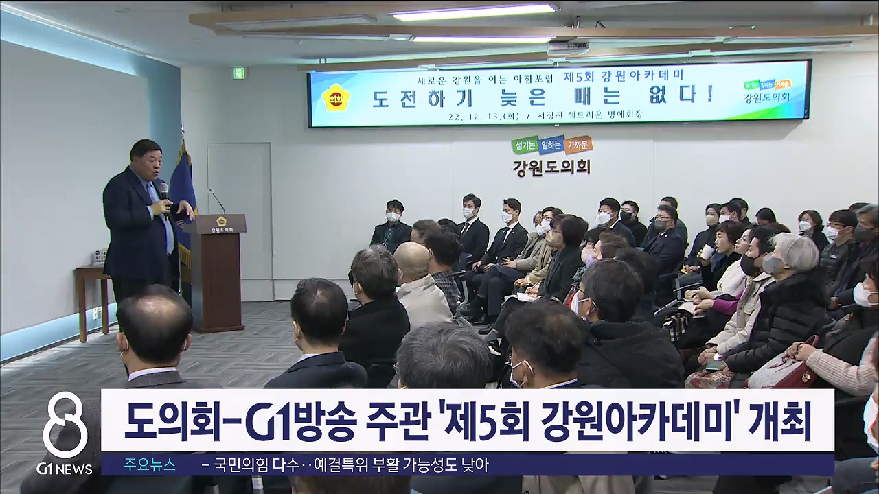강원도의회와 G1방송이 국내 저명인사를 초청해 강연하는 아침포럼, '제5회 강원아카데미'가 오늘(13일) 도의회 세미나실에서 열렸습니다.