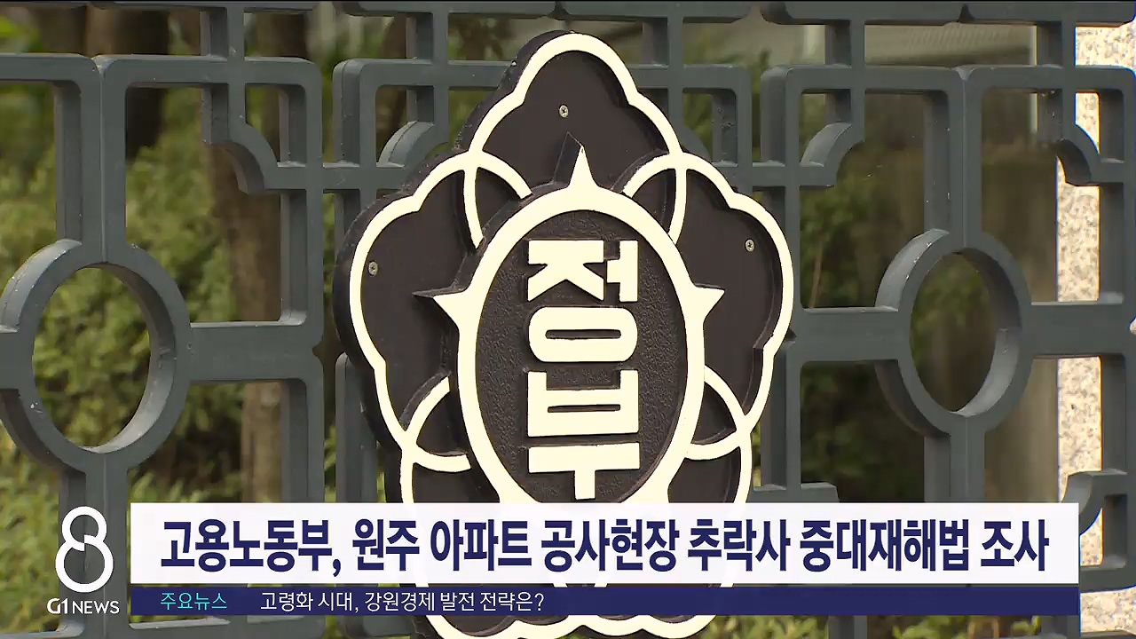 원주의 한 아파트 공사현장에서 70대 노동자가 숨지는 사고가 발생해 고용노동부 강원지청이 중대재해처벌법 위반 여부를 조사하고 있습니다.