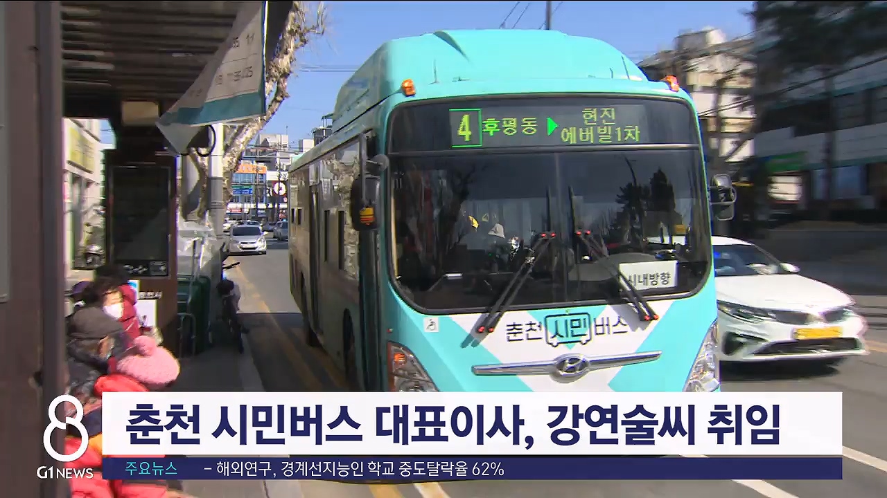 춘천시에 따르면 주식회사 영서로지스틱스 강연술 대표이사가 시민버스 최대 지분을 확보한 후 주총을 거쳐 대표이사로 취임했습니다.