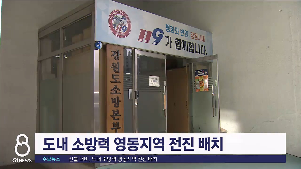 강원소방본부는 오늘 오전 9시를 기점으로 동해안 6개 시·군에 영서지역 소방차량 18대를 이동 배치해 대형 산불 발생에 대비하고 있습니다.