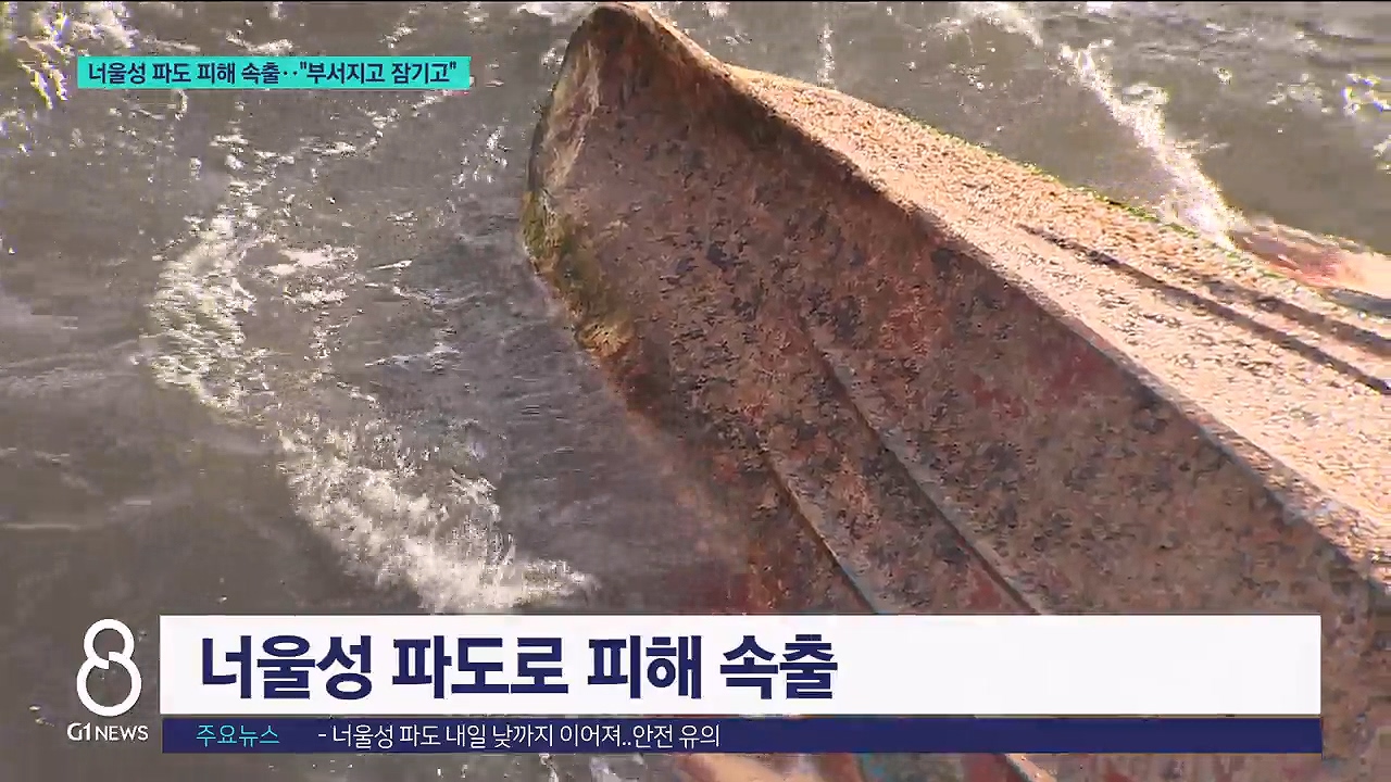 어제 저녁부터 동해안 앞바다에는 풍랑 경보가 내려져 있는 가운데, 너울성 파도로 선박이 부서지는 등 어민들의 피해가 속출하고 있습니다.