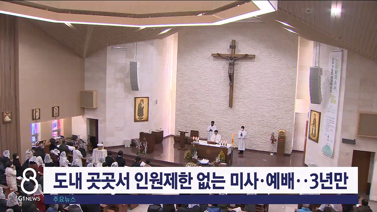 도내 곳곳서 인원제한 없는 미사·예배..3년만