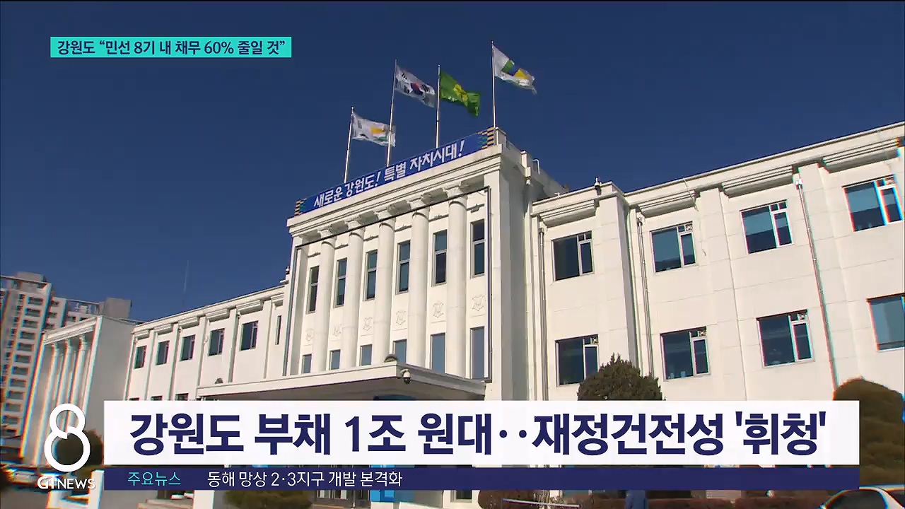 강원도형 재정준칙 제정과 출자·출연기관 구조 조정을 통해 앞으로 4년 동안 1조 원이 넘는 빚의 60%를 갚겠다고 선언했습니다.