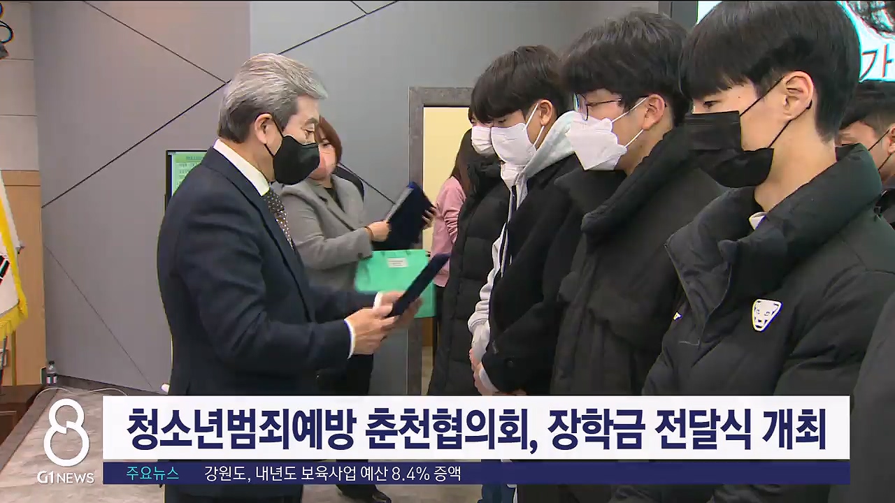 법무부 청소년범죄예방위원 춘천지역협의회가 오늘(29일) 강원도공무원교육원에서 춘천사랑잇기 청소년재단 장학금 전달식을 개최했습니다.