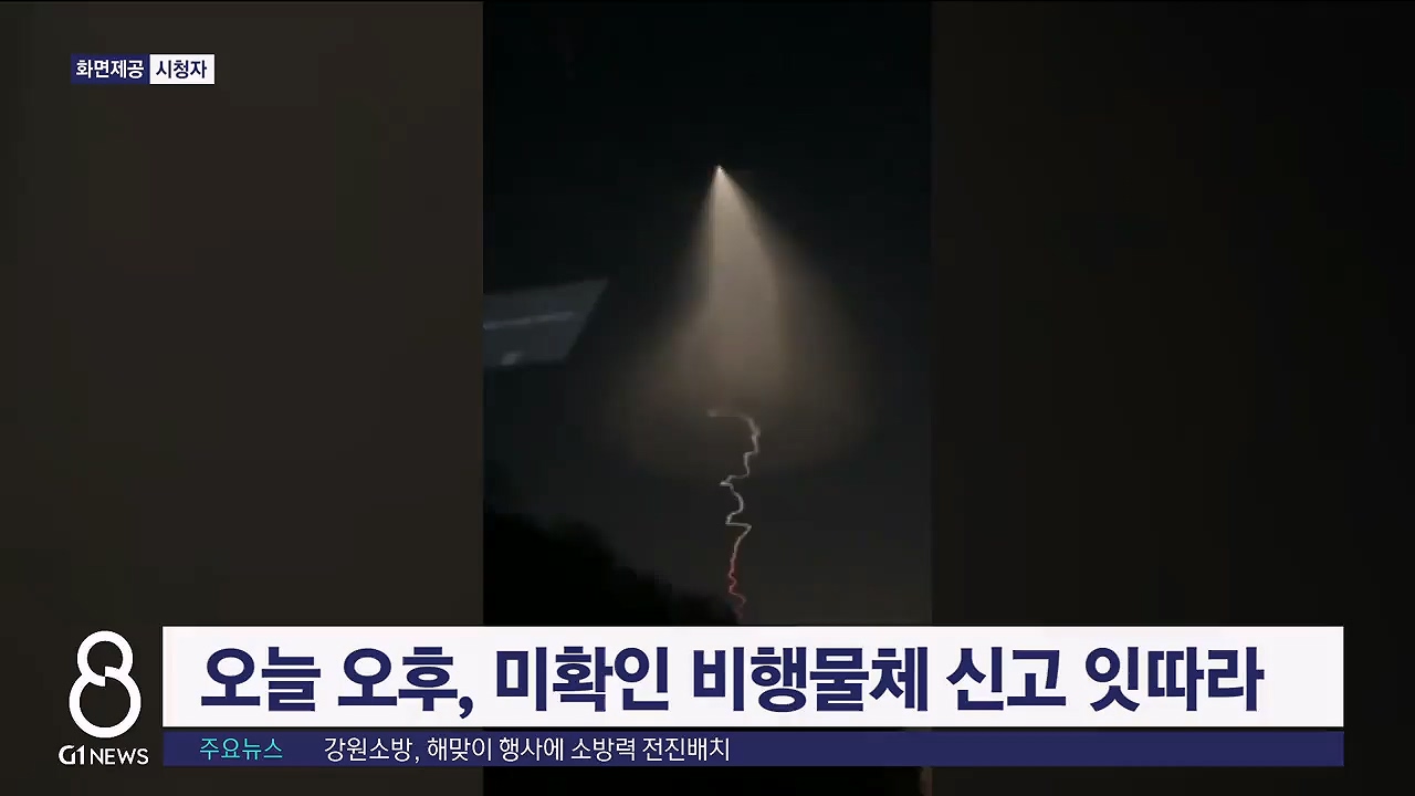 오늘 오후 6시 10분쯤 춘천과 강릉, 고성 등 도내 곳곳에서 섬광과 함께 미확인 비행물체를 봤다는 신고가 경찰과 소방에 쇄도했습니다.