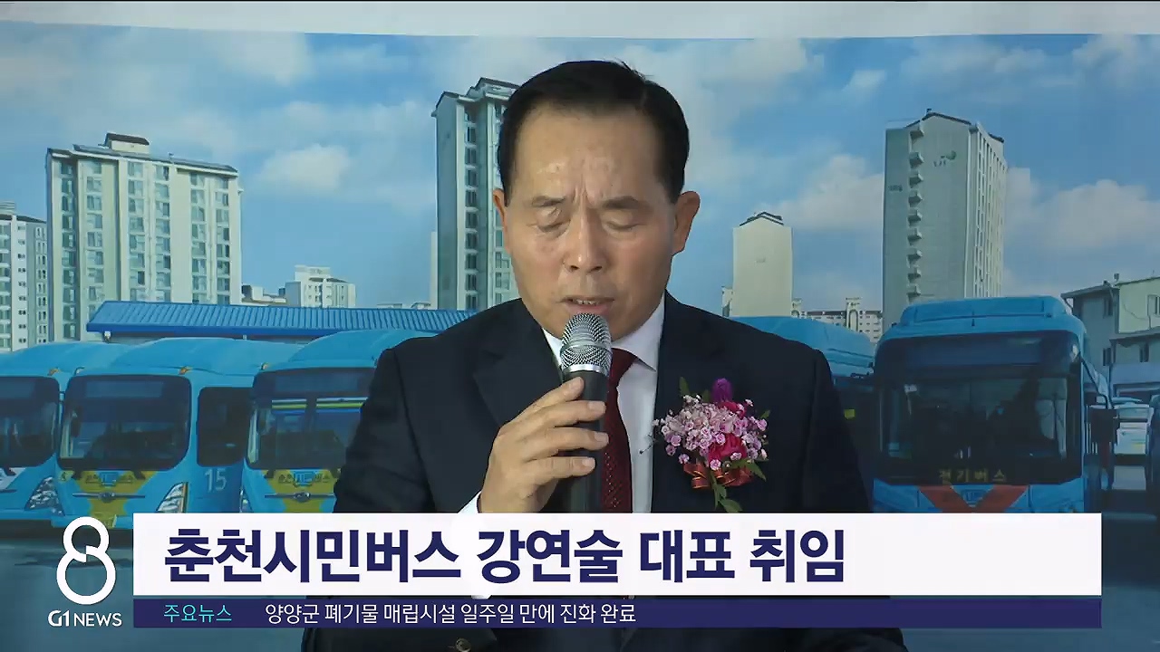 춘천시민버스는 오늘(2일) 오후 회사에서 강 대표의 취임식을 가졌습니다.