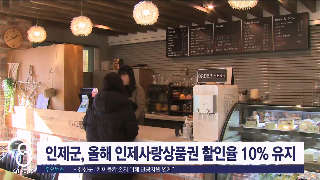 인제군이 정부의 지역화폐 예산 감축에도 불구하고 올해 인제사랑상품권의 할인율 10%를 유지하기로 했습니다.