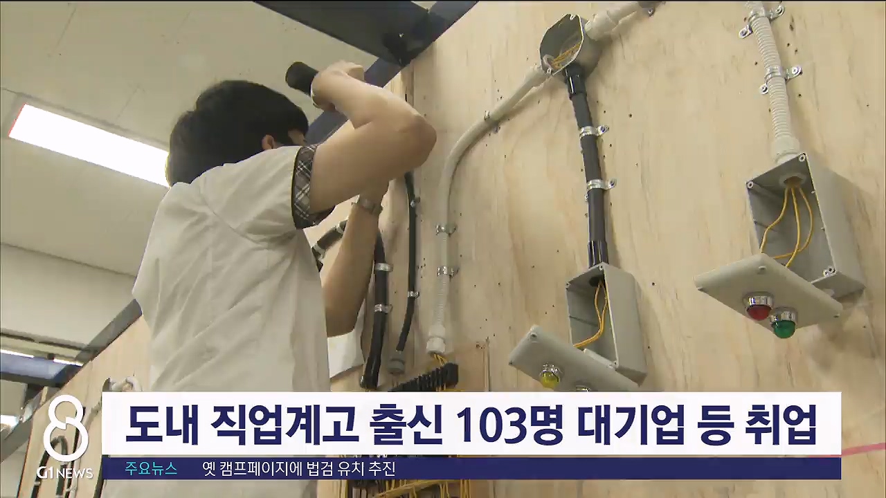 도내 직업계 고등학교 출신 103명이 국내 대기업과 공기업, 공무원 등에 합격했습니다.