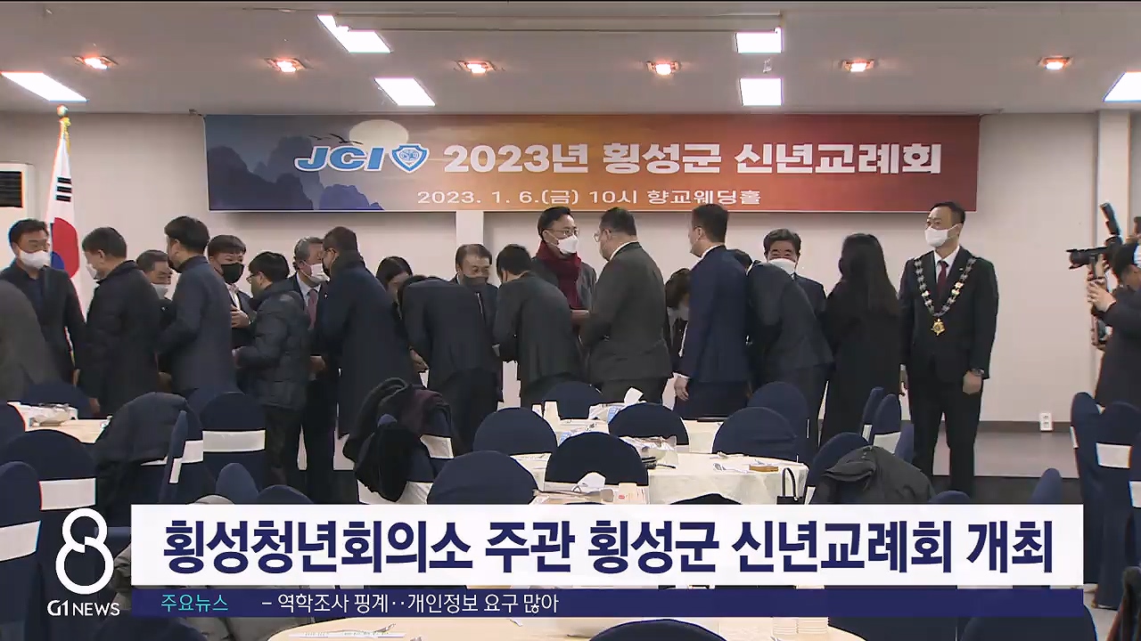 횡성청년회의소가 주관하는 2023년 횡성군 신년교례회가 오늘(6일) 횡성향교 웨딩홀에서 열렸습니다.