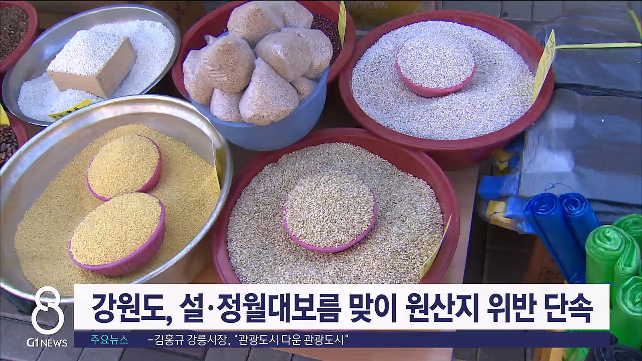 강원도가 설과 정월대보름을 맞아 모레(9일)부터 오는 20일까지 농축산물 원산지 허위 표시와 식품 위생 단속을 강화합니다.